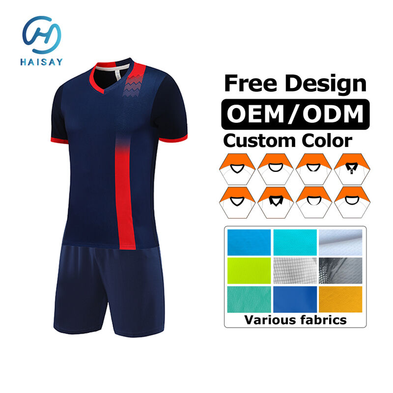 Esta camiseta de futebol masculino está disponível em cores clássicas como vermelho, azul e preto, tornando-a uma excelente escolha para uniformes de equipe, programas escolares ou jogos recreativos casuais.Seu design elegante permite uma fácil personalização, perfeito para adicionar logotipos de equipas, números de jogadores e marca de patrocinadores.